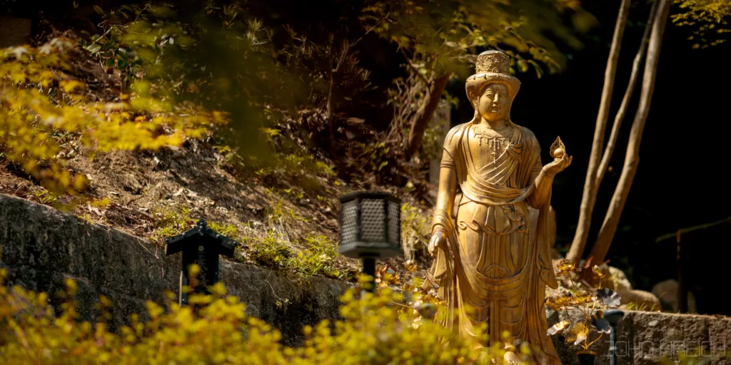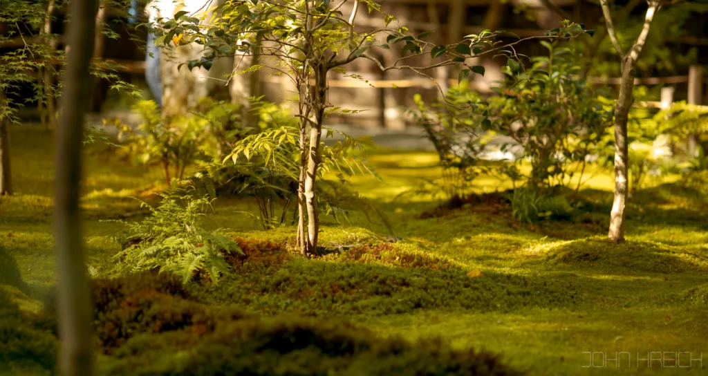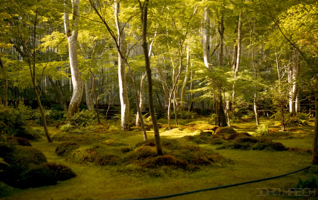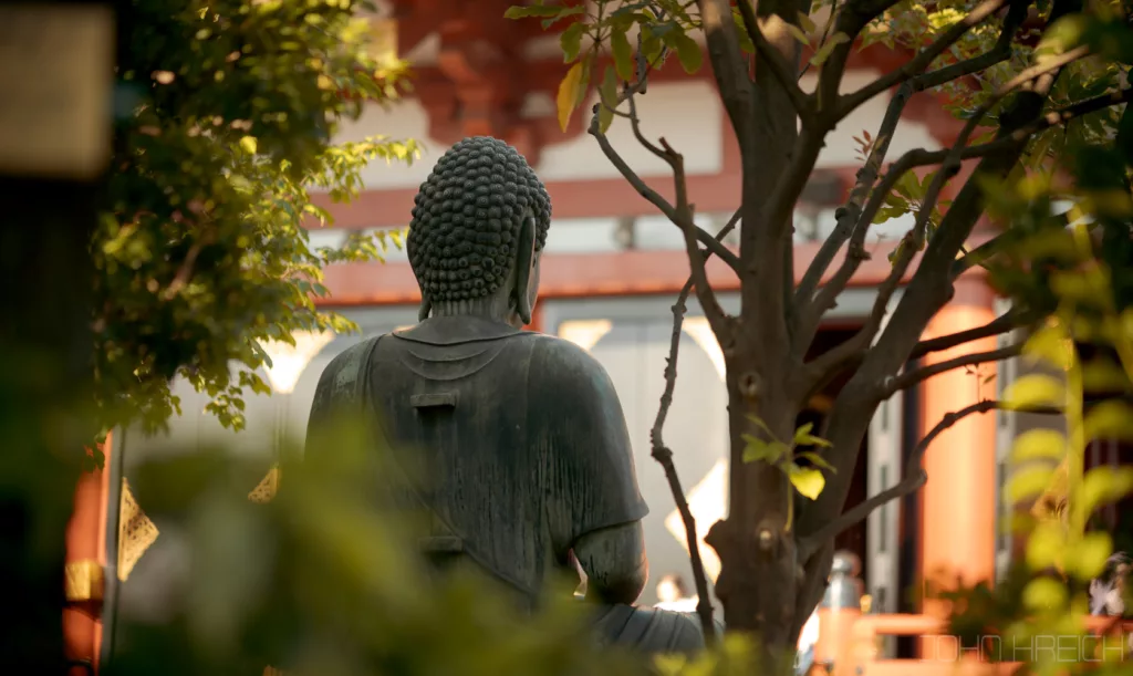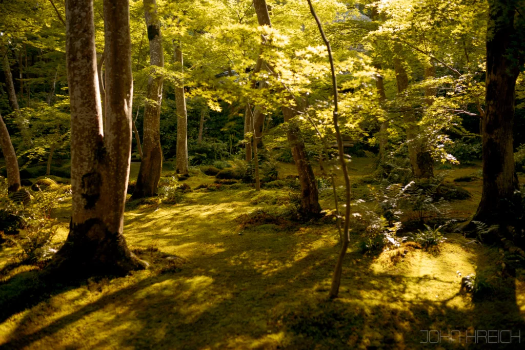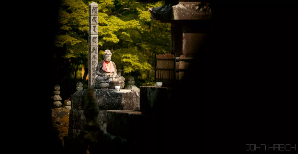 le temple Hozen-ji avec sa statue recouverte de mousse.