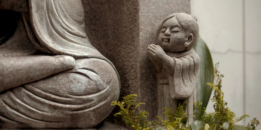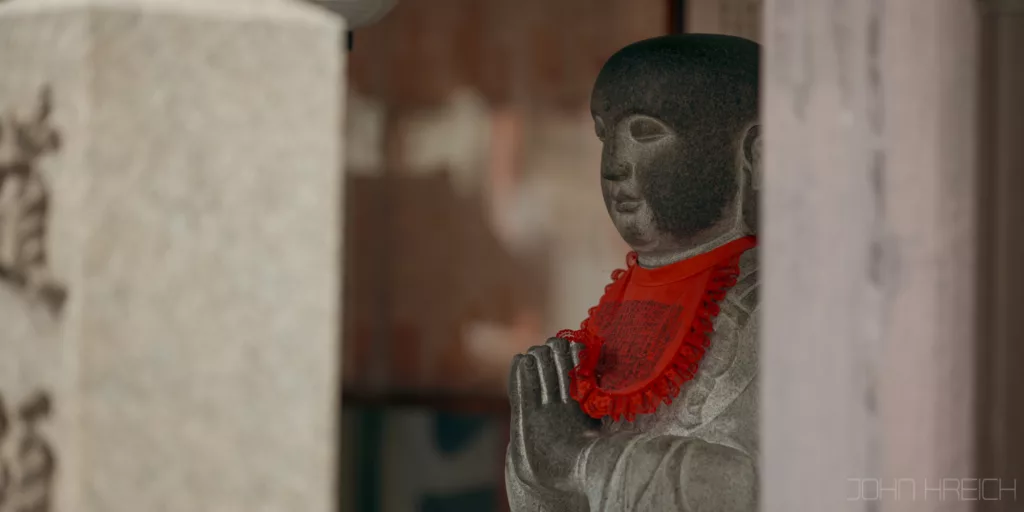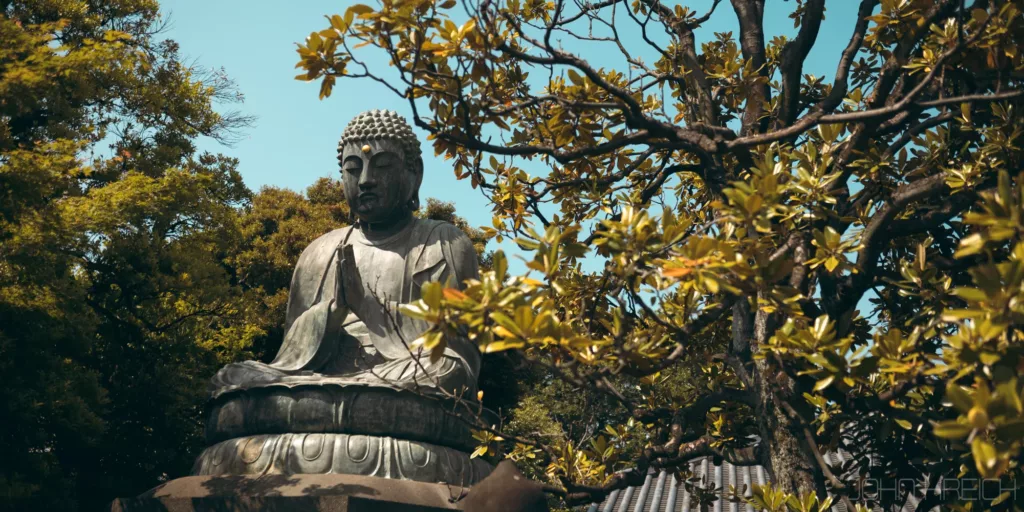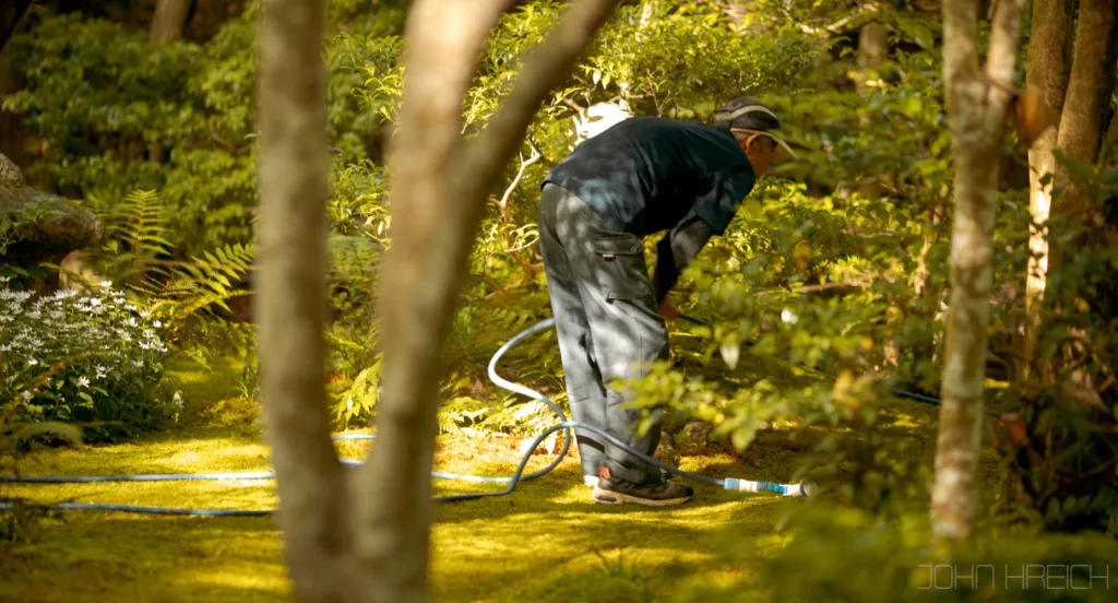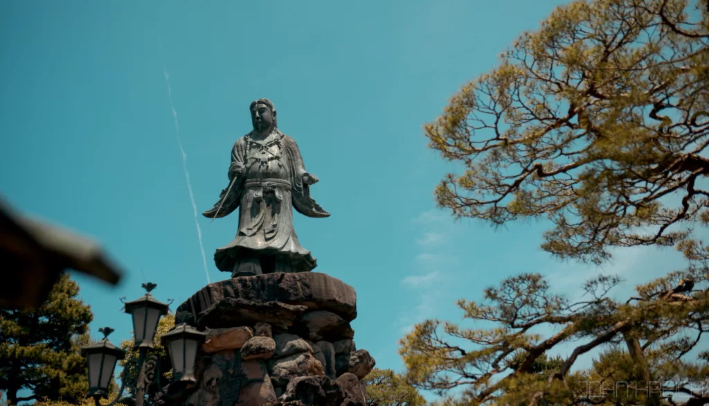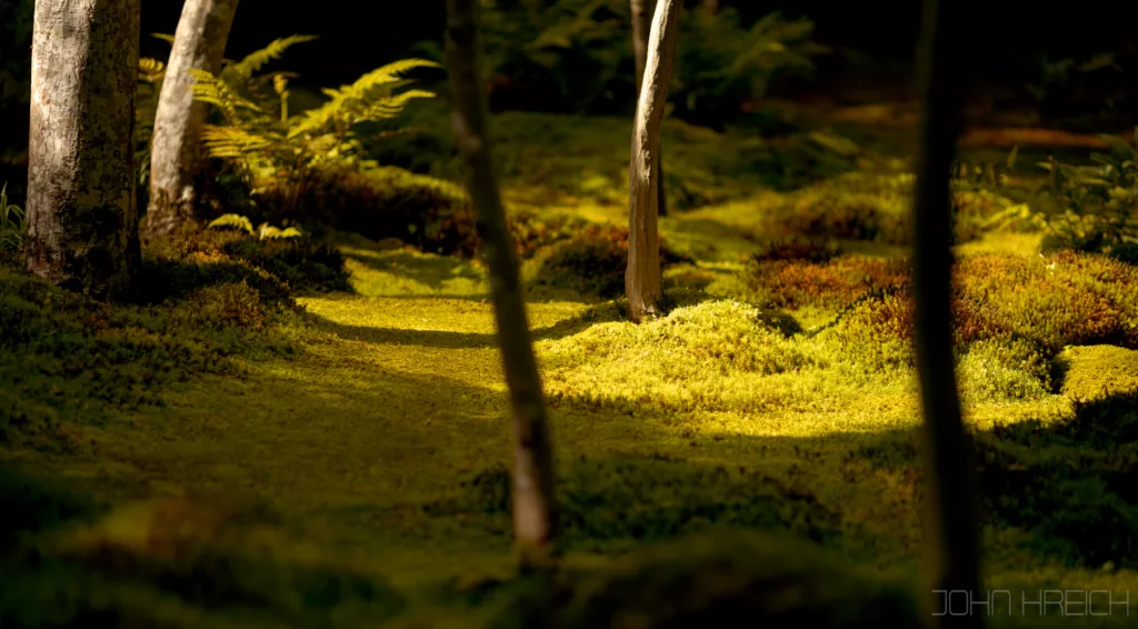 le temple Hozen-ji avec sa statue recouverte de mousse.