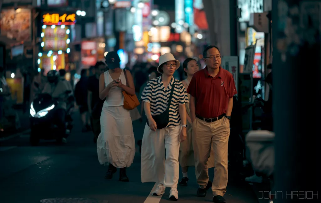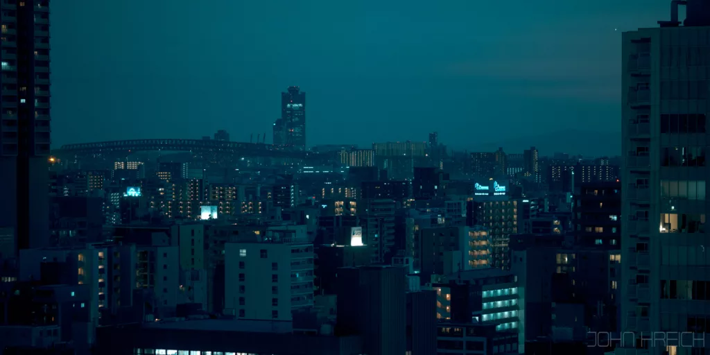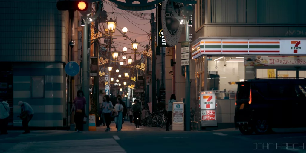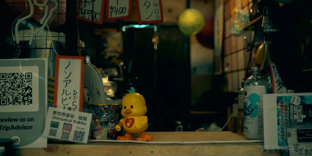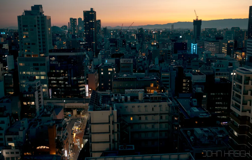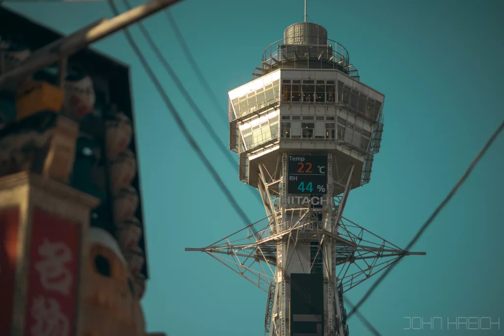 Quand le soleil se couche, toutes les enseignes et la tour Tsutenkaku s’illuminent et le quartier est a redecouvrir entierement.