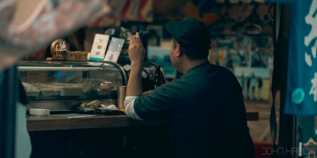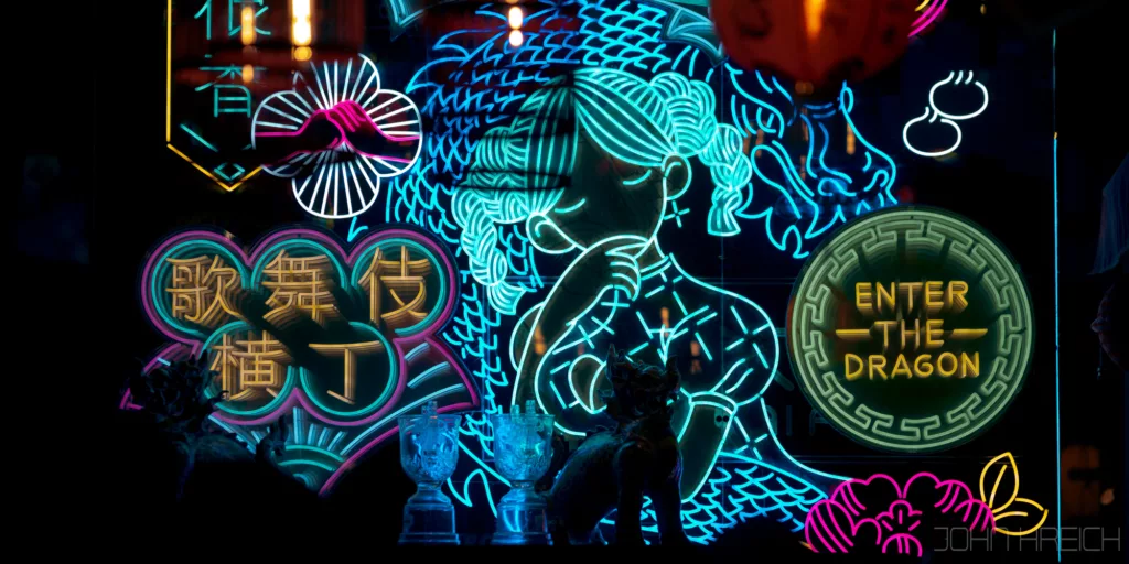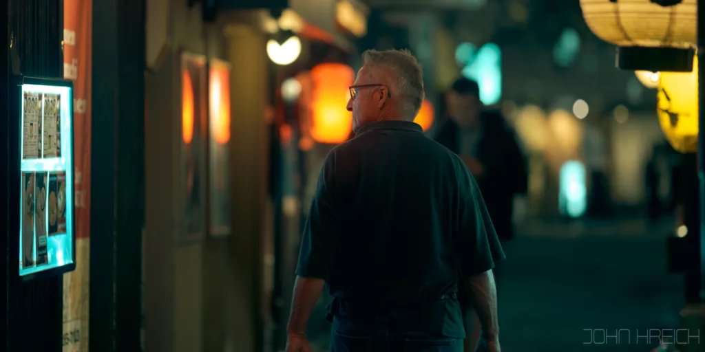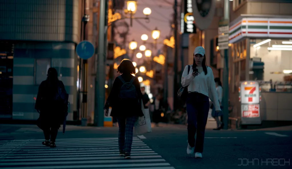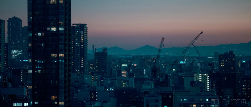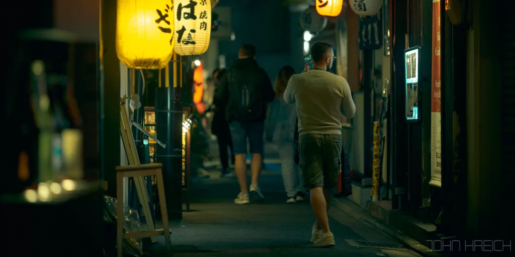 Quand le soleil se couche, toutes les enseignes et la tour Tsutenkaku s’illuminent et le quartier est a redecouvrir entierement.