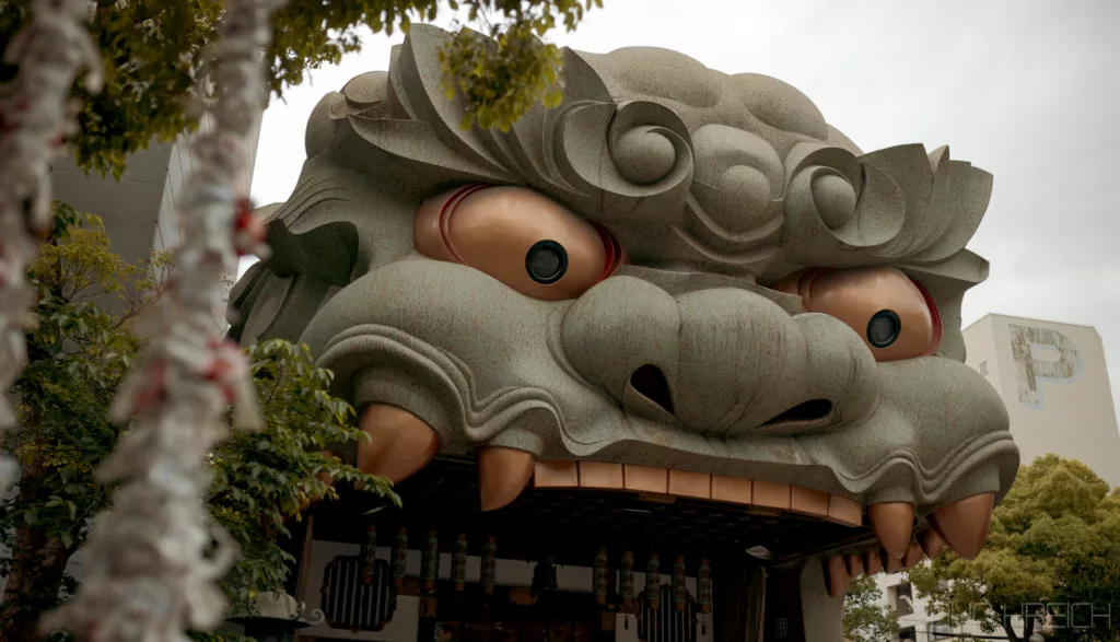 Plus bas encore, se trouve le temple Yasaka Jinja qui vaut surement le detour a cause de sa forme en tete de lion.