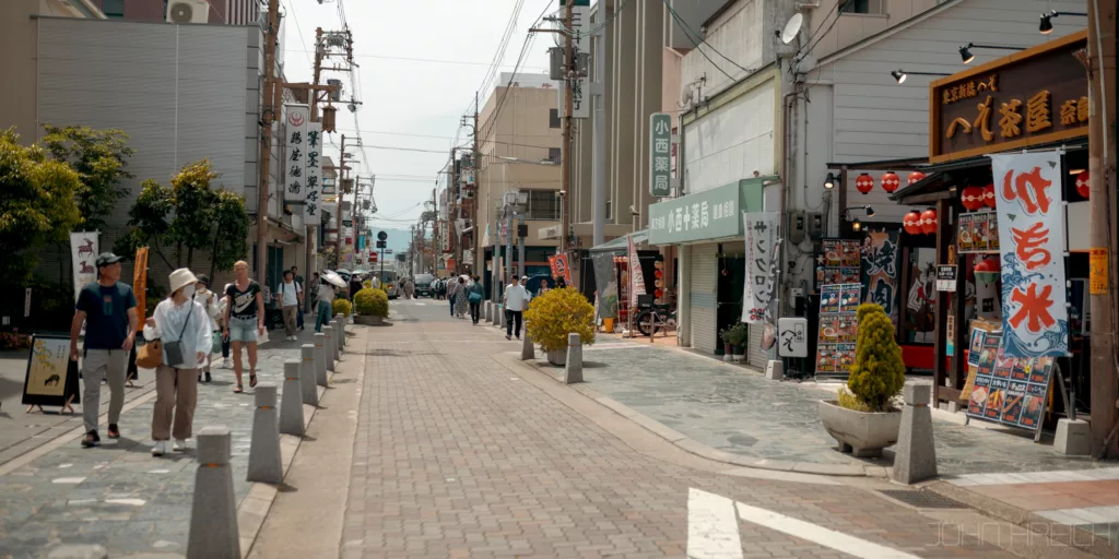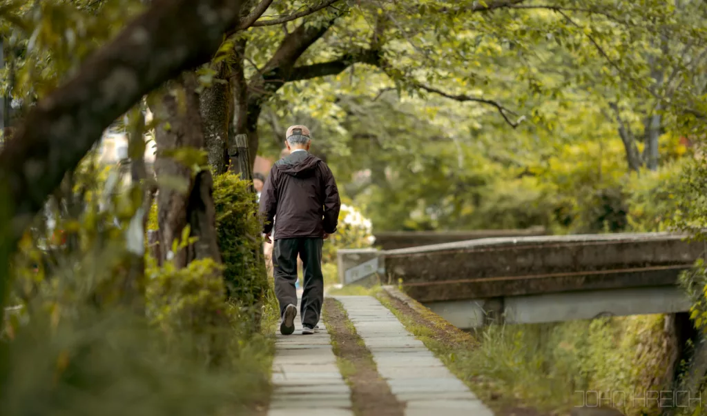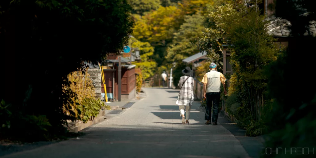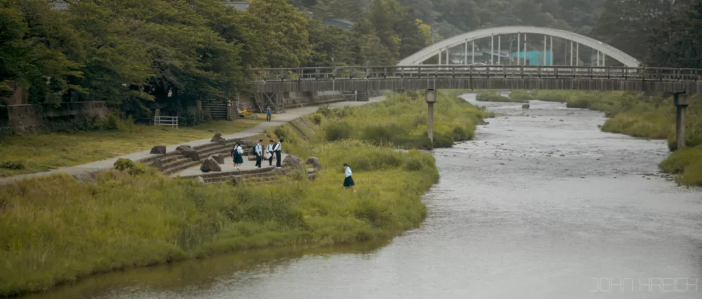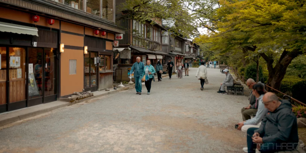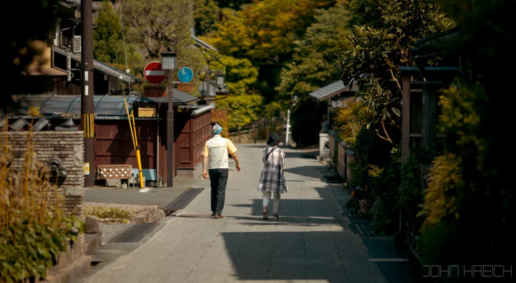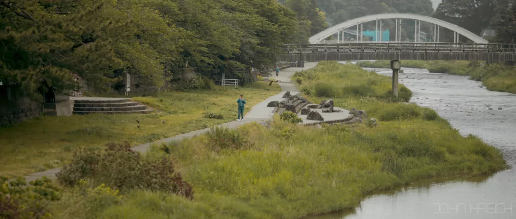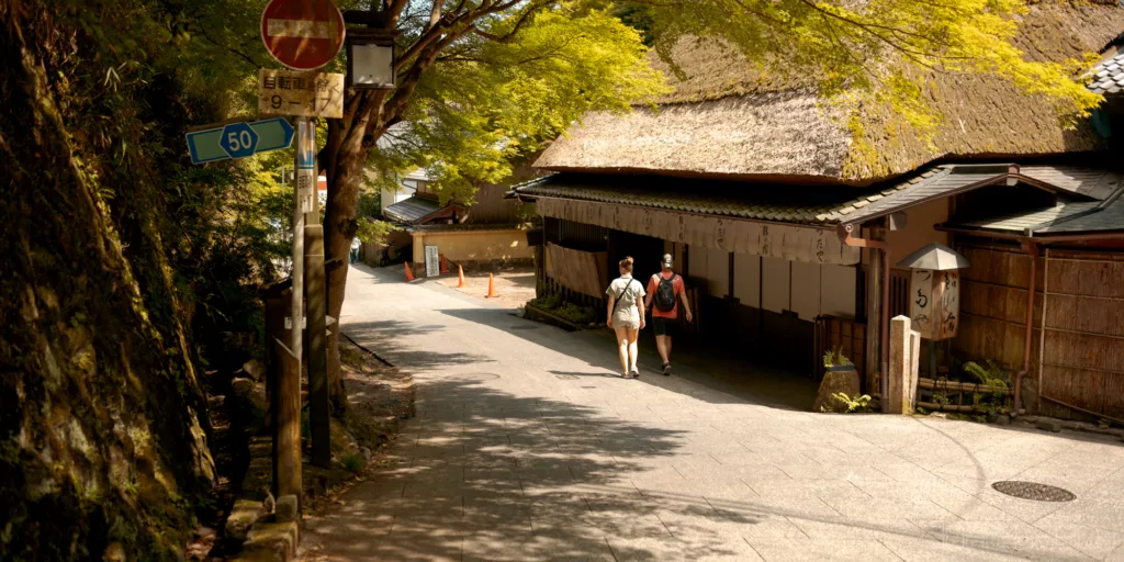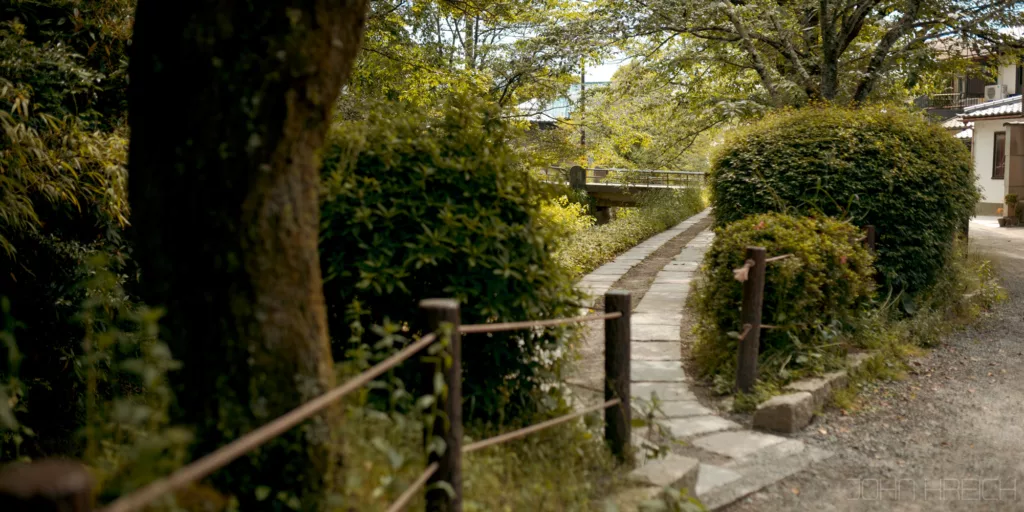 Cette ballade est super agréable avec au bord de la rivière, arbres, sanctuaires (Otoyo). cafés tenus par des personnes âgées et restaurants.