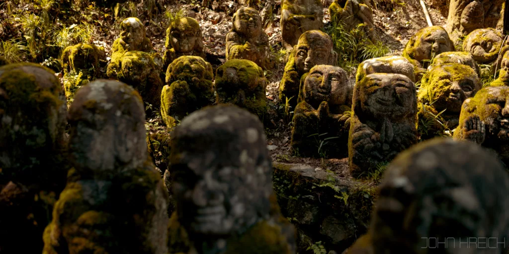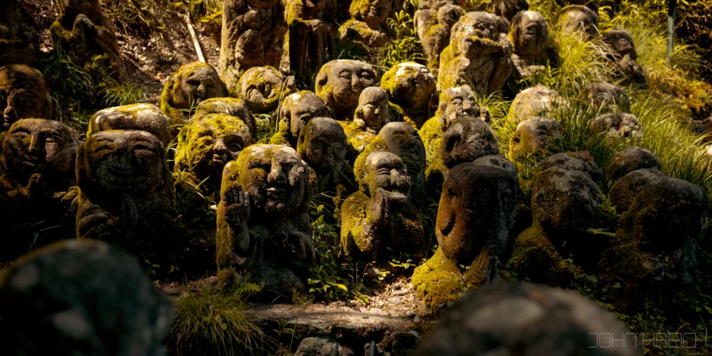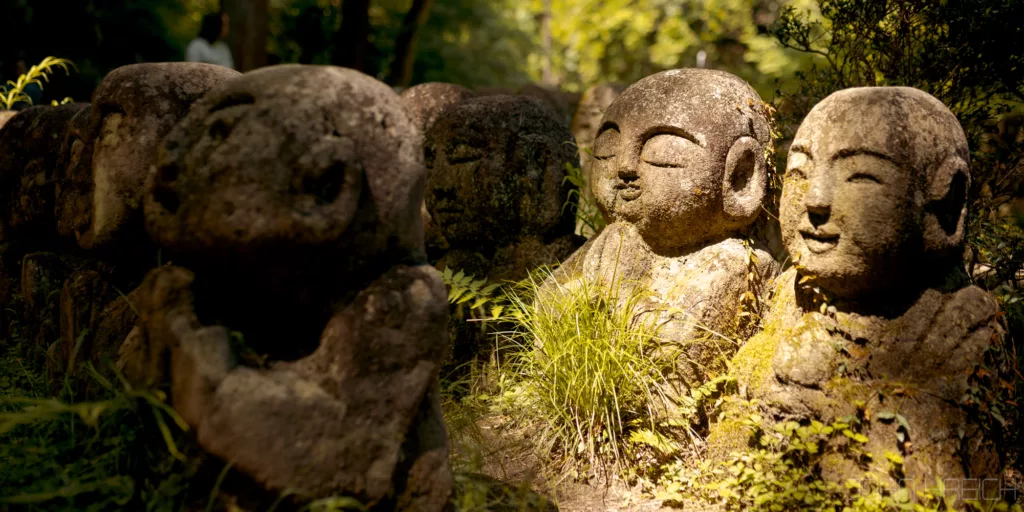 Sur le chemin Saga Toriimoto, c’est la que se trouveront le temple Otagi Nenbutsuji avec ses 1200 statues de pierres parsemees dans la montagne,