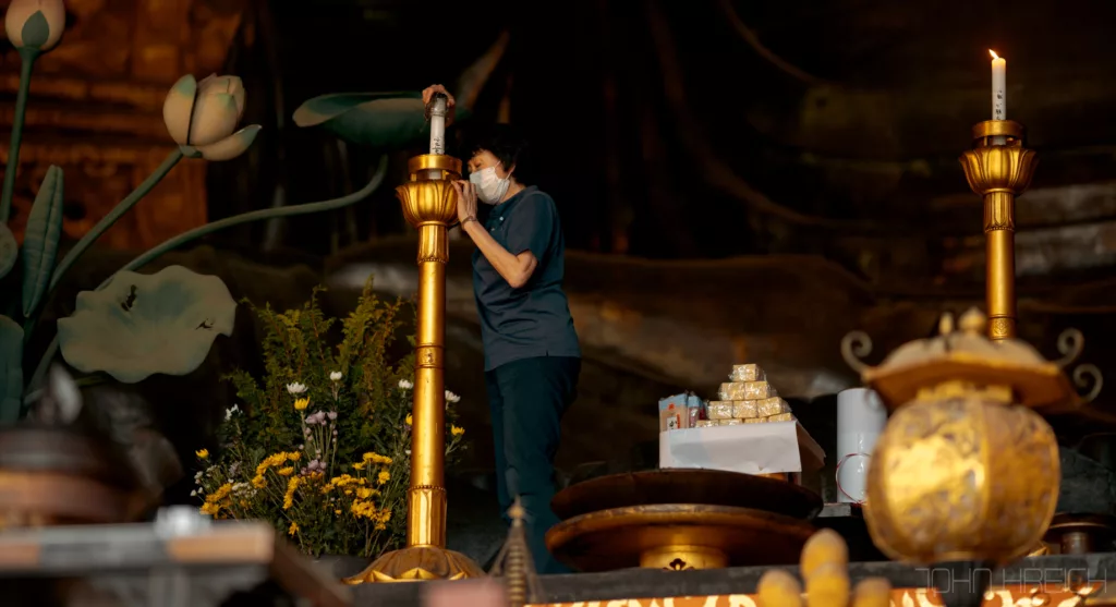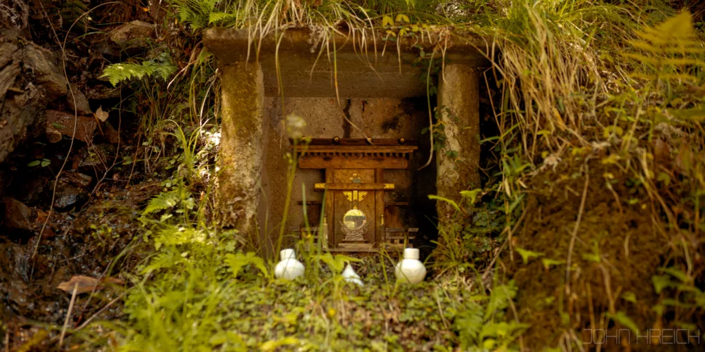 Les gens viennent prier toute la journee devant elle et l’arrosent pour garder sa mousse fraiche.